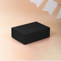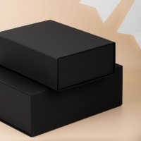 Коробка из переплетного картона, кашированного тисненой тонированной в массе бумагой, с крышкой на магните. Толщина картона 2 мм. Поставляется в плоском виде. Сборка осуществляется на скотч.