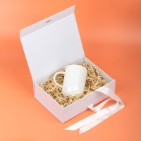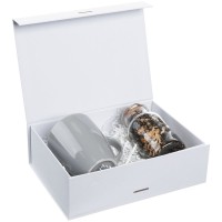 Коробка из переплетного картона, кашированного тонированной в массе крафтовой бумагой. Крышка на двух магнитах дополнительно фиксируется репсовой лентой.Толщина картона 2 мм. Поставляется в плоском виде. Сборка осуществляется на скотч.