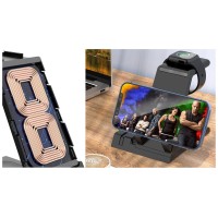 Выходная мощность беспроводного заряда при использовании зарядного устройства QC 2.0–3.0 (25–30 Вт) с параметрами зарядки 5 В, 3 А; 9 B, 2,4 A; 12 В, 2A: — основная область: 15 Вт, смартфон небольшого размера можно расположить горизонтально — область для наушников на основании станции: до 5 Вт — область для Apple Watch (2–8): до 3 Вт — выходы USB-A и Type-C (2 штуки): автораспределение по 5 В, 1 А на разъем при полной нагрузке