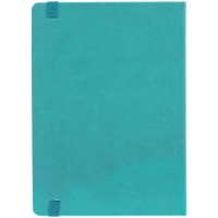 Ежедневник с твердой обложкой, выполнен из материала Latte, цвет морской волны II, обрез бирюзового цвета, дополнен ляссе бирюзового цвета и резинкой с металлическим шильдом.