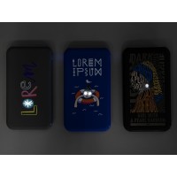 На лицевую поверхность может быть нанесено полноцветное изображение, а гравировка, хотя и будет одноцветной, сопровождается равномерной белой подсветкой. 120 секунд постоянного холодно-белого свечения при начале заряда смартфона, а также при начале и окончании заряда самого аккумулятора (или при нажатии на кнопку). Для наилучшего результата рекомендуем сочетать цветные элементы УФ-печати с тонкими линиями гравировки. Задняя крышка обновленной модели не содержит технических надписей и также может быть использована для УФ-нанесения без лазерной гравировки.
