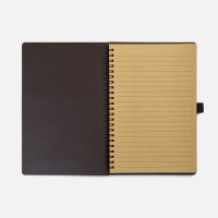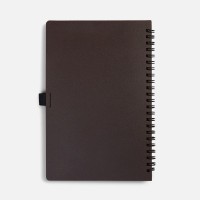 Блокнот на спирали из пластика и кофейного жмыха, дополнен резинкой для ручки. Блок из переработанной бумаги, 140 страниц в линейку, плотность 70 г/м?.