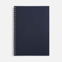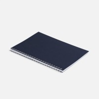 Блокнот формата А5 в клетку на пружине с цветной обложкой. Обложка из картона Macedonia Navy синего цвета плотностью 260 г/м?. Блок из белой бумаги плотностью 70 г/м?, 50 листов.