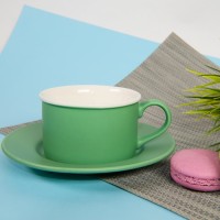 ,- ровная форма чашки, - белый кант по верхнему краю - современное матовое покрытие, - блюдце с углублением , Эта чайная пара – яркий и стильный акцент любого офиса или дома. Ровная форма чашки с гладким матовым покрытием напоминает всеми любимый вафельный стаканчик с мороженым, отсюда и «сладкое» название комплекта – ICE CREAM. Сегодня матовое покрытие особенно востребовано и популярно в дизайне: оно привлекает и манит, очаровывая бархатной глубиной цвета. С матовым покрытием товары выглядят более презентабельно и дорого: не только посуда, но и помады, лаки для ногтей, краска для стен и даже автомобили. Нежный белый кант по верхнему краю дополняет ассоциацию с тающим мороженым, а блюдце с углублением не позволит чашке случайно соскользнуть. Большое количество цветов в линейке поможет подобрать идеальный корпоративный подарок в цвет логотипа или, напротив, раскрасит офисные будни разнообразием оттенков. , Цвет близкий,к Pantone 109С