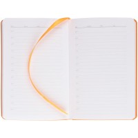 Ежедневник с твердой обложкой, выполнен из материала Latte, оранжевый ОО, дополнен ляссе в цвет обложки.