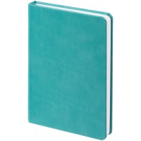Ежедневник с твердой обложкой, выполнен из материала Latte, цвет морской волны II, дополнен ляссе в цвет обложки.