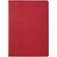 Ежедневник с твердой обложкой, выполнен из материала Latte, красный РР, дополнен ляссе в цвет обложки.