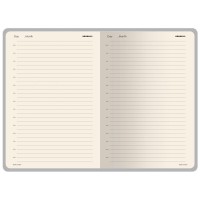 Недатированный ежедневник Bruno Visconti «Palermo» формата А5 с гибкой (flex) обложкой – практичный помощник в деле планирования рабочего времени для деловых людей, живущих в ритме мегаполиса.Отличительной особенностью ежедневника является горизонтальная, скрепляющая обложку и блок, тоненькая резинка. Оригинальное решение позволяет раскрывать ежедневник на 180 градусов и вести записи у самого края корешка. Для фиксации второй резинки, не позволяющей ежедневнику раскрываться, предусмотрена выемка на обложке. Обложка тонка, но фактурность придает ей элемент брутальности, а бархатистое нанесение на ее оборотной стороне- благородство и статусность. Картонный карман для визиток, записок, бумаг – функциональная деталь и приятная дополнительная опция. Бумажный блок изготовлен из бумаги бежевого цвета, плотностью 70 г/кв.м и содержит 272 страницы, 23 из которых справочная информация.