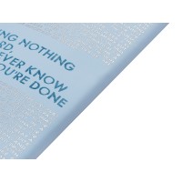Так трудно ничего не делать, ведь совершенно непонятно, когда ты закончишь! Лаконичный слоган мотивирует к активным действиям. Планируй и завершай! Вот что кроется в элегантной надписи, выполненной золотым тиснением! А Flex обложка напоминает «Будь гибким! Великолепный недатированный ежедневник Bilbao черно-синего цвета с тиснением фольгой. Бежевая бумага 65 г/м, широкая горизонтальная фиксирующая резинка. Гибкая обложка с покрытием Soft-touch. Особенность этого ежедневника - часть обложки внахлест может использоваться как закладка. Ежедневник упакован в картонный полукороб и термопленку.