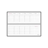 Недатированный планинг выпускается размером 305*130 мм и содержит 128 страниц (блок 292 х100 мм). Для них выбрана высококачественная белая бумага плотностью 70 грамм. Разворот представляет собой разметку на 7 дней недели с графами с указанием времени. Месяц и день недели указаны на русском и английском языках. Первые 15 страниц содержат справочные сведения из различных областей на русском языке. Крепление листов на открытом гребне способствует быстрому переходу по страницам. Современная, практичная обложка из приятного на ощупь материала с легким прорезиненным эффектом хорошо подходит для тиснения. Декоративная прострочка нитью в тон подчеркивает закругленную форму обложки.