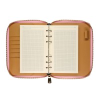 Деловая нежность! Вот как можно охарактеризовать этот очаровательный розово-зефирный ежедневник. Большое отделение на молнии вмещает в себя и сменный блок для записей на кольцевом механизме, и отделения для визиток и ручки. В этом бизнес-аксессуаре поместятся и дополнительные документы и смартфон.