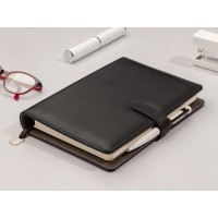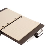 Недатированный ежедневник «Toscana» от Bruno Visconti на кольцах в твердом переплете – элегантный деловой аксессуар, подчеркивающий статус владельца с продуманным до мелочей функционалом:поролонированная обложка из высококачественной экокожи с декоративной нитью по периметру в тон ежедневника;бархатистая отделка, вырубка под пластиковые карты и визитки на внутренней стороне обложки;магнитный хлястик и петля для ручки;скругленные углы блока и обложки;ляссе с шильдиком для удобства навигации.Внутренний блок изготовлен из бумаги бежевого цвета и плотностью 70 г/кв.м и содержит 272 страницы, в т.ч. страницу для персональных данных, 17 страниц справочной информации.