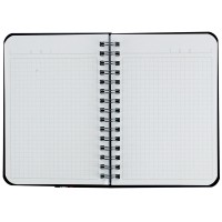 Горизонтально ориентированный блокнот для записей. Линовка блока - клетка. Обложка сделана из матового непрозрачного пластика. Крепление блокнота на гребне позволяет открывать его на 360 градусов. При необходимости листы легко вырываются, не нарушая целостности блока. Блокнот подходит для записей небольшого объема информации. Готов к персонализации.