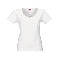 Женская футболка из натурального хлопка с элегантным V-образным вырезом. Материал отлично подходит для нанесения рекламной информации. Натуральная ткань не вызывает раздражения кожи.