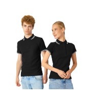 Рубашка-поло Erie с окантовкой. Воротник и манжеты резинка 1х1. Мужская модель с двумя пуговицами, женская - 4 пуговицы в тон изделия. Обшивка внутри воротника. Женская модель с разрезами по бокам. Женская модель приталена. Пике, 100% чесаный хлопок. Плотность 180 г/м2.