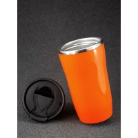 Двухслойная конструкция из пластика снаружи и пищевой нержавеющей стали внутри. Герметичная завинчивающаяся крышка с откидным клапаном для питья. В отверстие в крышке можно вставить шнурок для удобного ношения стакана на руке. Шнурок в комплект не входит.