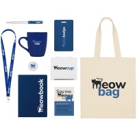 Материал товара шоппер- 100% хлопок, блокнот и чехол- искусственная кожа, ручка и держатель- пластик, кружка- керамика, ланъярд- RPET, открытка- бумага