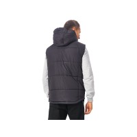 Утепленный жилет для мужчин*центральная молния контрастного цвета*два боковых кармана застегиваются на молнию*большой внутренний карман для документов или денег*контрастная внутренняя подкладка*эластичная кулиска с фиксаторами по низу изделия*задняя часть жилета длиннее передней*съемный капюшон*утеплитель 260гр и в капюшоне 200гр