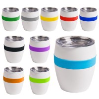 Термокружка,LINE с двойными стальными стенками сохранит напиток горячим до 3х часов, холодным - до 4х часов.Благодаря форме удачно лежит в руке, и за счет резинового браслета не скользит. Высота без крышки 9,7 см, подходит для большинства кофемашин.