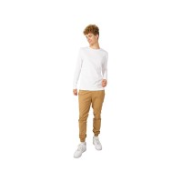 Футболка с длинным рукавом комфортной посадки с боковыми швами. Горловина обработана рибом 1х1 и тесьмой по спинке. Футболка выполнена из хлопкового джерси.