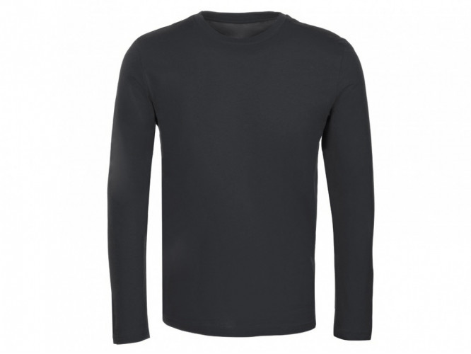 Футболка с длинным рукавом комфортной посадки с боковыми швами. Горловина обработана рибом 1х1 и тесьмой по спинке. Футболка выполнена из хлопкового джерси.