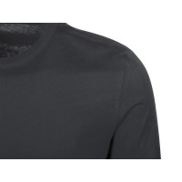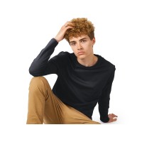 Футболка с длинным рукавом комфортной посадки с боковыми швами. Горловина обработана рибом 1х1 и тесьмой по спинке. Футболка выполнена из хлопкового джерси.