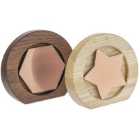 Красивое решение подойдет как для команды, так и для отдельных выдающихся личностей. Вставка с шестигранником из зеркального пластика на деревянной основе крепится на приподнятое основание внутри стелы, что создает объем и многослойность награды. На вставке предусмотрен клеевой слой для крепления после нанесения.