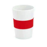 Описание Стакан NELO, белый с красным, 350мл, 11,2х8см, тонкая керамика, силикон