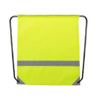Рюкзак из мягкого полиэстера 190T со светоотражающей полосой спереди. Самозакрывающиеся черные завязки и светоотражающие уголки, усиленные металлическими кольцами. ,