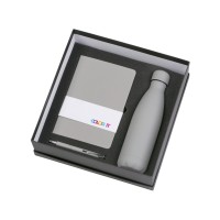 Подарочный набор с блокнотом С2, металлической ручкой и термобутылкой, серый