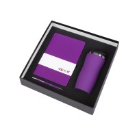 Описание Подарочный набор с блокнотом С2, металлической ручкой и термокружкой, фиолетовый