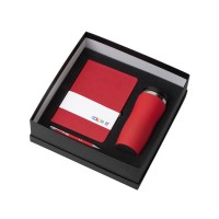 Описание Подарочный набор с блокнотом С3, металлической ручкой и термокружкой, красный