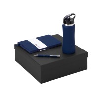 Описание Подарочный набор с блокнотом С1, металлической ручкой и бутылкой для воды, темно-синий