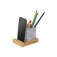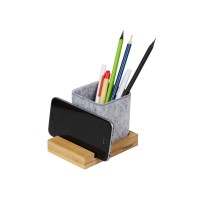 Подставка на рабочий стол для ручек и карандашей из RPET-фетра на подставке из бамбука. У бамбуковой подставки выемка 10 мм, в которую можно поставить телефон.