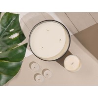 Ароматическая свеча — элегантное решение для подарка партнерам, коллегам, друзьям и близким. Изготовленная из соевого воска, свеча является совершенно безвредной, а входящий в состав натуральный ароматизатор наполнит помещение тонким ароматом ванили и кокоса, который оказывает релаксирующий эффект и придаёт ощущение спокойствия и умиротворения.За счет низкой температуры плавления, экологически и биологически чистый соевый воск горит медленнее и дольше. Свечи хватает на 50 часов горения.Стильный дизайн свечи идеально впишется в любой интерьер и станет отличным его дополнением, а стеклянную чашу можно использовать при декорировании, даже когда свеча прогорит. Большая площадь чаши представляет собой отличное решение для нанесения.