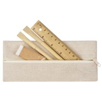 Удобный набор канцелярии со всем необходимым. В наборе: пенал на молнии, ручка Recycled, вечный карандаш в бамбуковом корпусе с колпачком из переработанной бумаги, ластик и бамбуковая линейка. Чтобы все самые необходимые пишущие принадлежности были под рукой.