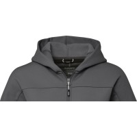 По центру спереди расположена обратная застежка-молния. Карманы спереди. Внутренняя сторона покрыта ворсом. Петля для подвешивания с фирменной символикой. Горловина из атласа. Внутреннее выходное отверстие для медиа с направляющей для шнура. Полумесяц. Главный лейбл нанесен методом термоприклеивания, удобным для размещения рисунков на ткани.