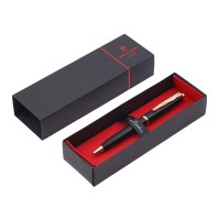 Шариковая ручка Pierre Cardin GAMME Classic• Корпус - латунь. Цвет - черный;• Отделка - лакированное покрытие;• Детали дизайна - сталь/позолота;• Упаковка - картонная коробочка черного цвета с картонным ложементом красного цвета;• Размер упаковки -175 х 55 х 35 мм, вес 35 гр Комплектация:• Металлический шариковый стержень с логотипом Pierre Cardin на корпусе с чернилами синего цвета;• Инструкция по использованию ручки.Ручки Pierre Cardin серии GAMME Classic имеют классическую форму и представлены в самых основных корпоративных цветах: черный, красный, синий, серебристый или стальной.Специально подобранные элементы дизайна золотистого и серебристого цветов выгодно подчеркивают стиль каждой модели.Толщина пишущего узла (толщина линии) - 0,9 ммДиаметр шарика - 1 мм
