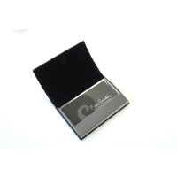 Визитница на магните выполнена из металла с искусственной кожей снаружи и черном бархатом внутри.