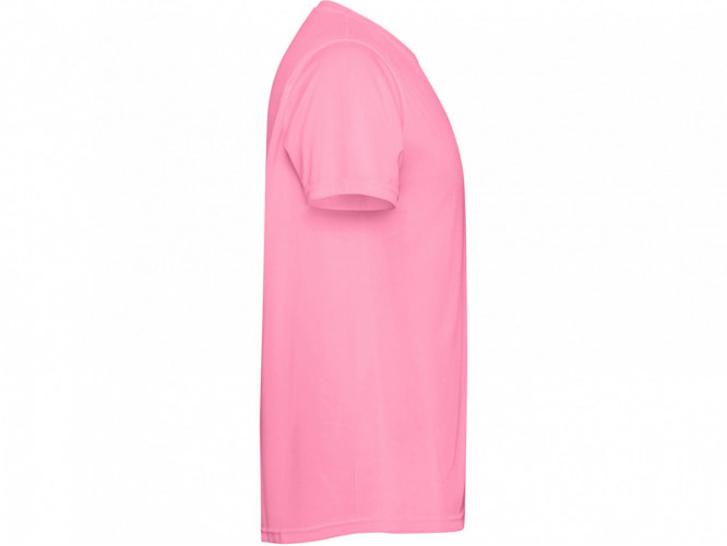 Детская футболка с коротким рукавом из технологичного полотна. Отстрочки в тон. Спинка с удлинением. Боковые швы со смещением вперед.