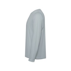 Детский лонгслив из технологичного полотна. Отстрочки в тон. Спинка с удлинением. Боковые швы со смещением вперед.