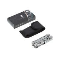 МНОГОФУНКЦИОНАЛЬНЫЙ ИНСТРУМЕНТ STINGER С НАБОРОМ ИЗ 12 ФУНКЦИЙ: 1. Острогубцы 2. Пассатижи3. Кусачки4. Лезвие большое5. Отвёртка крестовая6. Отвёртка шлицевая7. Открывалка для бутылок8. Консервный нож9. Пила10. Инструмент для снятия изоляции11. Шило12. Стропорез ХАРАКТЕРИСТИКИ:Материал инструментов: нержавеющая сталь 2Cr13Материал рукояти: нержавеющая стальДлина: 104 ммШирина: 45 ммВес: 235 гВ комплекте: чехол из синтетического материалаУпаковка: складная картонная коробка
