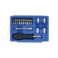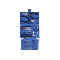 НАБОР ИНСТРУМЕНТОВ STINGER, 25 ПРЕДМЕТОВНабор инструментов на 25 предметов STINGER W0414 поставляется в необычном трёхстворчатом пластиковом кейсе насыщенного синего цвета. Входящие в комплект инструменты позволят без труда решать самые разные задачи по ремонту в доме или починке техники. Все инструменты изготовлены из высококачественной закаленной углеродистой стали с хромированным покрытием, рукоятки выполнены из углепластика чёрного цвета. Этот материал не скользит и гарантирует удобное положение в руке. В КОМПЛЕКТЕ:1. Рукоятка для бит - 1 шт. 2. Бита - 9 шт.3. Адаптер для шестигранных головок – 1 шт.4. Удлинитель для шестигранных головок – 1 шт.5. Головка шестигранная (6/7/8/9 мм) – 4 шт.6. Отвёртка прецизионная шлицевая – 4 шт.7. Отвёртка прецизионная крестовая – 2 шт.8. Плоскогубцы – 1 шт.9. Кусачки – 1 шт.10. Пинцет – 1 шт.ХАРАКТЕРИСТИКИ:Материал: углеродистая сталь, углепластик (карбон)Размер: 164 х 107 х 49 мм