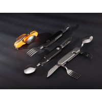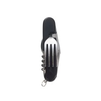 Нож перочинный STINGER имеет 8 функций:1. Лезвие2. Ложка3. Вилка4. Открывалка для бутылок5. Консервный нож6. Ледокол7. Штопор8. Кольцо для ключей ХАРАКТЕРИСТИКИМатериалы:• лезвие/инструменты: нержавеющая сталь AISI 420, твердость 44-48 HRC• рукоять: нержавеющая сталь AISI 420, твердость 44-48 HRC• накладки рукояти: АБС-пластикРазмер: 109 ммВес: 146 гЦвет накладок рукояти: черныйНакладки рукояти ножа не подлежат замене. Нож нельзя мыть в посудомоечной машине.Упаковка: картонная коробкаНож разборный, состоит из двух частей.Разборка: разогнуть вилку и ложку, разделить на 2 части.