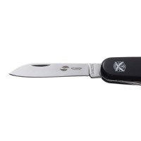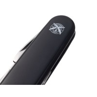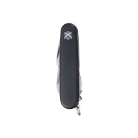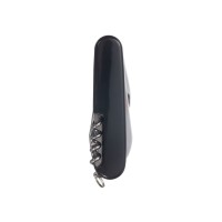 Нож перочинный STINGER имеет 10 функций:1. Большое лезвие2. Консервный нож с:3. – Малой отвёрткой4. Шило с: 5. – Иглой6. Штопор7. Открывалка для бутылок с:8. – Отвёрткой9. – Инструментом для снятия изоляции10. Кольцо для ключейХАРАКТЕРИСТИКИМатериалы:• лезвие/инструменты: нержавеющая сталь AISI 420, твердость 44-48 HRC• рукоять: нержавеющая сталь AISI 420, твердость 44-48 HRC• накладки рукояти: АБС-пластикРазмер: 90 ммВес: 63 гЦвет накладок рукояти: черныйНакладки рукояти ножа не подлежат замене.Упаковка: картонная коробка