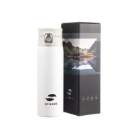 СВЕРХЛЕГКАЯ ТЕРМОКРУЖКА STINGER 0,42 лНАЗНАЧЕНИЕТермокружка STINGER предназначена для употребления пищевых жидкостей (воды, напитков) как в горячем, так и в холодном состоянии.ХАРАКТЕРИСТИКИОбъём: 0,42 л Вес: 0,231 кгВремя сохранения тепла: 6 часовВремя сохранения холода: 6 часовМетод изоляции: вакуумРазмеры• Высота – 21,9 см• Диаметр горлышка – 4,7 см• Диаметр дна – 6,5 см• Ширина (с учетом кольца и фиксатора) – 7,5 смТип крышки: винтовая крышка-пробка с откидным механизмомЦвет: белыйМатериалы• Корпус: медицинская нержавеющая сталь, класс AISI 316 Stainless Steel• Колба: медицинская нержавеющая сталь, класс AISI 316 Stainless Steel• Крышка: пищевой пластик, не содержит бисфенол А (BPA free)• Прокладки-уплотнители: пищевой силиконОСОБЕННОСТИ• Двойные стенки с вакуумной изоляцией отлично сохраняют температуру долгое время, гарантируют безопасность прикосновения к очень горячим и холодным напиткам.• Внешний и внутренний корпус из прочной медицинской нержавеющей стали AISI 316. • Пластиковые детали не содержат Бисфенол А (BPA FREE).• Герметичная крышка и дополнительный фиксатор защищают от случайного открывания и проливания жидкости.• Конструкция крышки позволяет открывать термокружку в одно касание и одной рукой – достаточно нажать на кнопку, верхняя крышка откинется на 180 градусов и автоматически зафиксируется в открытом положении.• Силиконовая накладка на дне предотвращает случайное скольжение и опрокидывание.• Ситечко для заварки чая или кофе.• Кольцо для удобства переноски.• Подходит под все виды подстаканников.