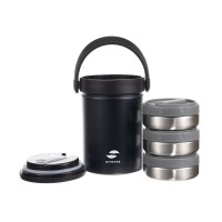 Отзывы о Термос ланч-бокс Stinger, 1,7 л, широкий, сталь, чёрный, три контейнера, 16,1 x 14,9 x 21,5