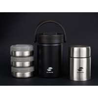 Описание Термос ланч-бокс Stinger, 1,7 л, широкий, сталь, чёрный, три контейнера, 16,1 x 14,9 x 21,5