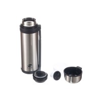 ТЕРМОC С РУЧКОЙ STINGER 1,8 лНАЗНАЧЕНИЕТермос STINGER предназначен для употребления пищевых жидкостей (воды, напитков) как в горячем, так и в холодном состоянии.ХАРАКТЕРИСТИКИОбъём: 1 л / 1,5 л / 1,8 л Вес: 0,674 кг / 0,850 кг / 0,958 кгВремя сохранения тепла: 24 часаВремя сохранения холода: 24 часаМетод изоляции: вакуумРазмеры• Высота – 35,6 см• Диаметр горлышка – 7,5 см• Диаметр дна – 10,9 см• Ширина (с учетом ручки) – 12,2 смТип крышки: винтовая Тип пробки: винтовая крышка-пробка с фиксаторомТип горлышка: широкоеТип подачи наполнения: винтовой фиксатор подачи/блокировки водыЦвет: серебристыйМатериалы• Корпус: нержавеющая сталь, класс AISI 304 18/8 Stainless Steel• Колба: нержавеющая сталь, класс AISI 304 18/8Stainless Steel• Крышка: нержавеющая сталь, класс AISI 304 18/8Stainless Steel, пищевой пластик, не содержит бисфенол А (BPA free)• Дополнительная чашка: пищевой пластик, не содержит бисфенол А (BPA free)• Прокладки-уплотнители: пищевой силиконОСОБЕННОСТИ• Двойные стенки с вакуумной изоляцией отлично сохраняют температуру долгое время, гарантируют безопасность прикосновения к очень горячим и холодным напиткам.• Внешний и внутренний корпус из прочной пищевой нержавеющей стали AISI 304 18/8.• Пластиковые детали не содержат Бисфенол А (BPA FREE).• Герметичная крышка-пробка надежно защищает от случайного открывания и проливания жидкости.• Эргономичная ручка и съемный регулируемый ремень для удобной переноски.• Дополнительная чашка в комплекте.• Идеально сохраняет вкус и аромат любимых напитков.