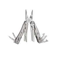МНОГОФУНКЦИОНАЛЬНЫЙ ИНСТРУМЕНТ STINGER С НАБОРОМ ИЗ 15 ФУНКЦИЙ1. Острогубцы2. Плоскогубцы3. Кусачки сменные4. Лезвие с фиксатором клинка Liner Lock5. Ножницы6. Многоцелевой резак (стропорез, резак для автомобильного ремня)7. Открывалка для бутылок с:8. - Плоской отверткой9. Консервный нож с:10. - Мини-плоской отверткой11. - Инструментом для снятия изоляции12. Крестовая отвертка13. Шило/кёрнер с:14. - Иглой15. КлипХАРАКТЕРИСТИКИМатериалы• лезвие/инструменты: нержавеющая сталь 440A, твердость 54-58 HRC• рукоять: нержавеющая сталь 440A, твердость 54-58 HRC• накладки рукояти: АБС-пластикРазмеры• Размеры мультитула: 106х38х20 мм• Общая длина: 185,6 мм• Длина клинка: 79,1 мм• Наибольшая ширина клинка: 17,1 мм• Толщина обуха: 2,5 мм• Длина рукояти: 106,5 мм• Ширина рукояти (в ср.части): 38,5 мм• Толщина рукояти (в ср.части): 18,3 ммВес: 245 гЦвет накладок рукояти: оранжевый.Накладки рукояти мультитула не подлежат замене.Комплектация: адаптер для бит, набор из 11 бит, нейлоновый чехолУпаковка: картонная коробка